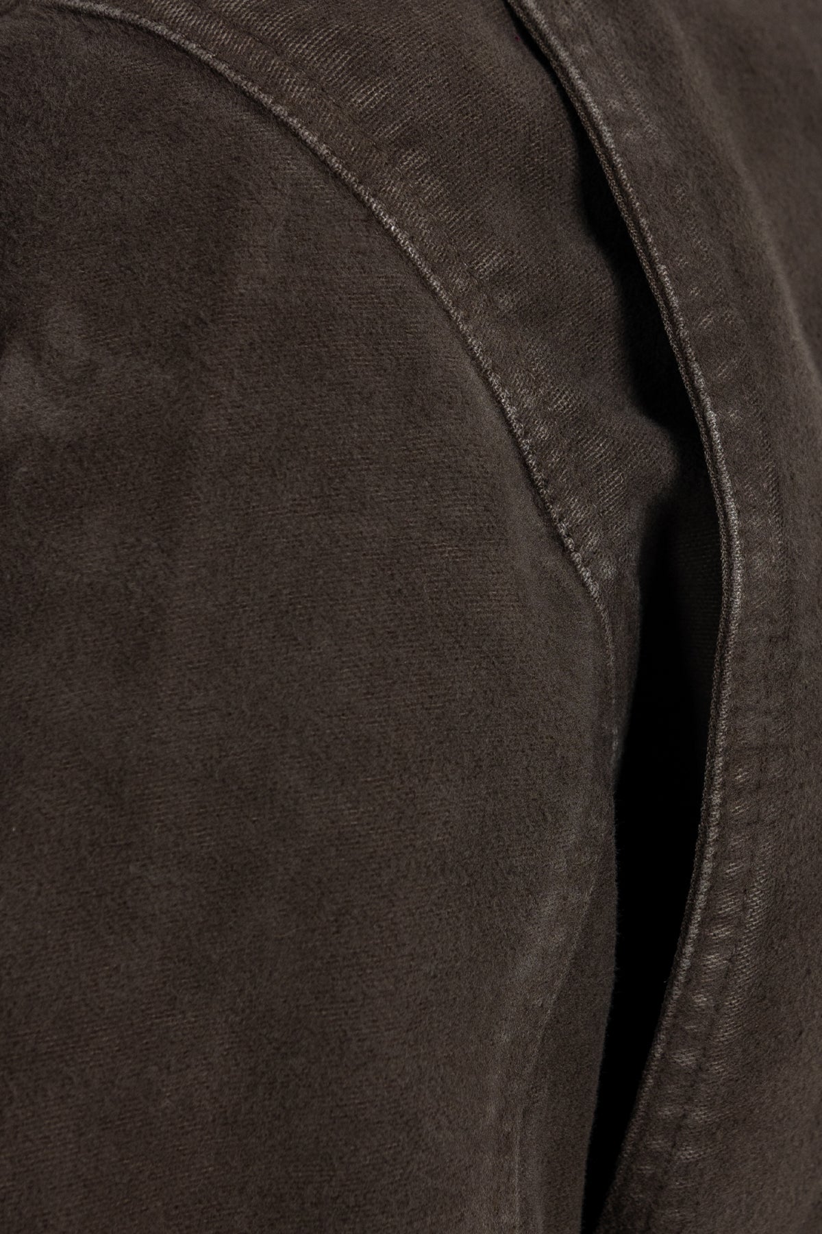 Questo capo sfida le convenzioni con un cotone morbido al tatto, mentre il trattamento vintage realizzato dopo la tintura aggiunge carattere grezzo e inaspettato. Bottoni a due fori in tono e tasche laterali a filetto definiscono una silhouette essenziale ma provocatoria.
