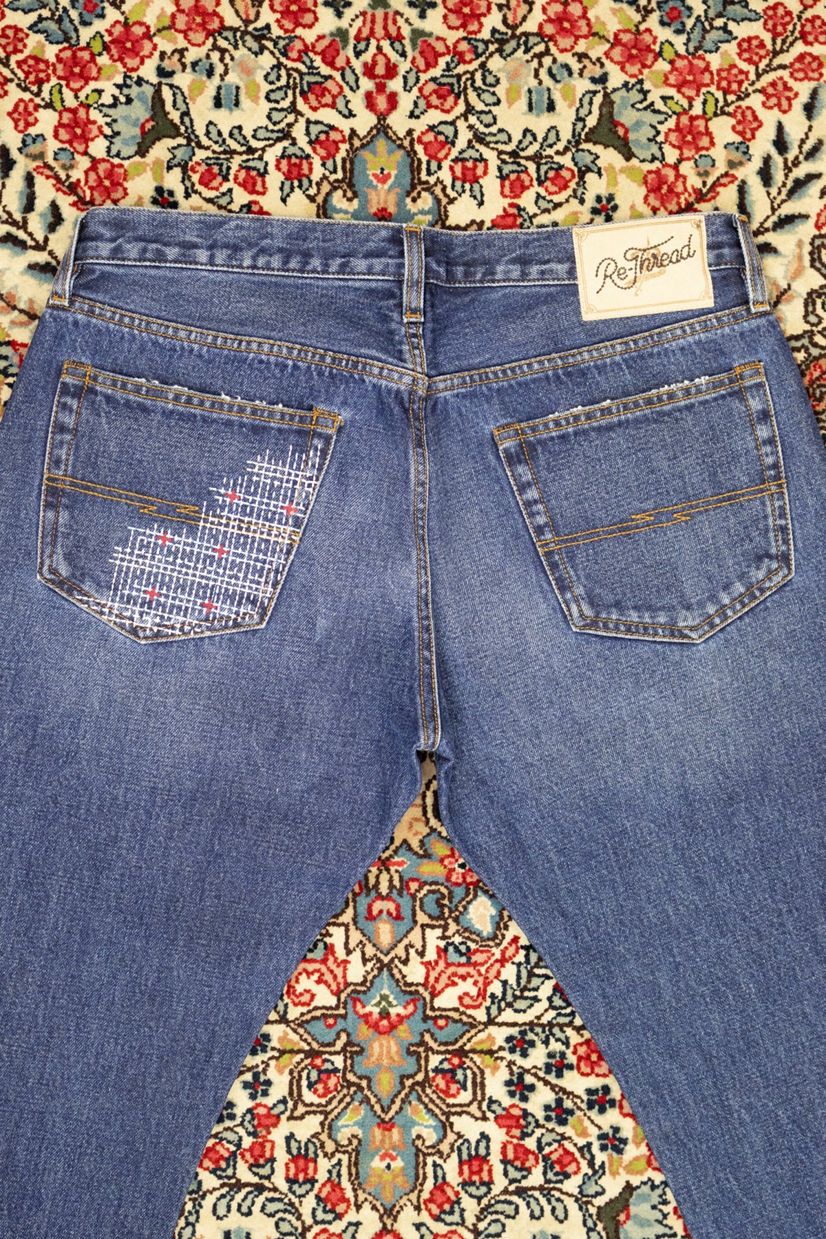 Re-Thread è una linea Barbanera che dà nuova vita ai capi imperfetti o fallati, rigenerandoli attraverso riparazioni, ricami e dettagli artigianali. Ogni pezzo è quindi unico nel suo genere.