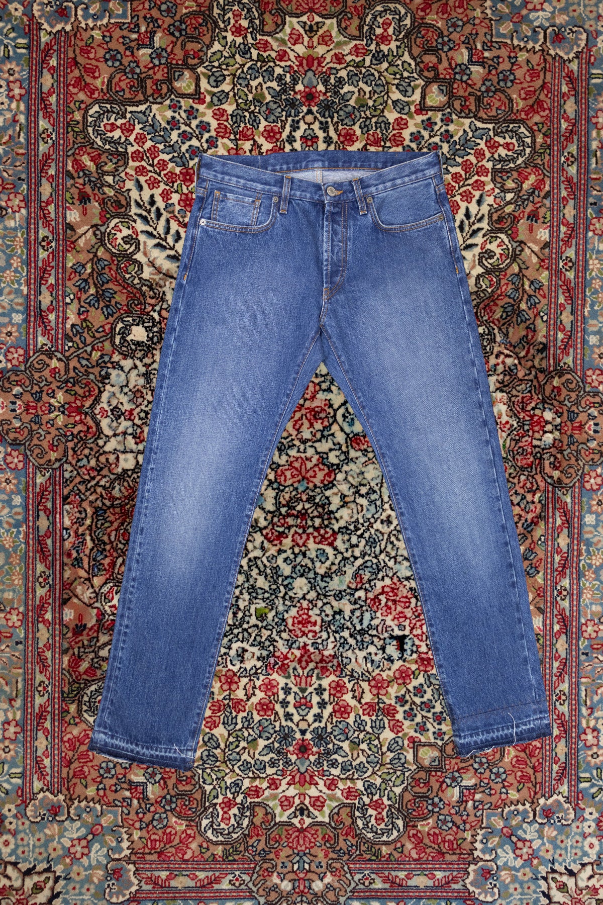 Questa versione presentava un fallo di tessuto sul retro del jeans e sul fondo della gamba. Questi falli sono stati coperti con un ricamo etnico zig-zag color tabacco mentre il fondo dei pantaloni è stato lasciato a taglio vivo.
