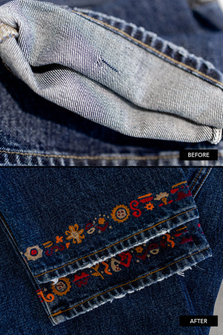 Each piece is reinterpreted based on its original condition and reworked with different techniques, making every item truly one-of-a-kind.