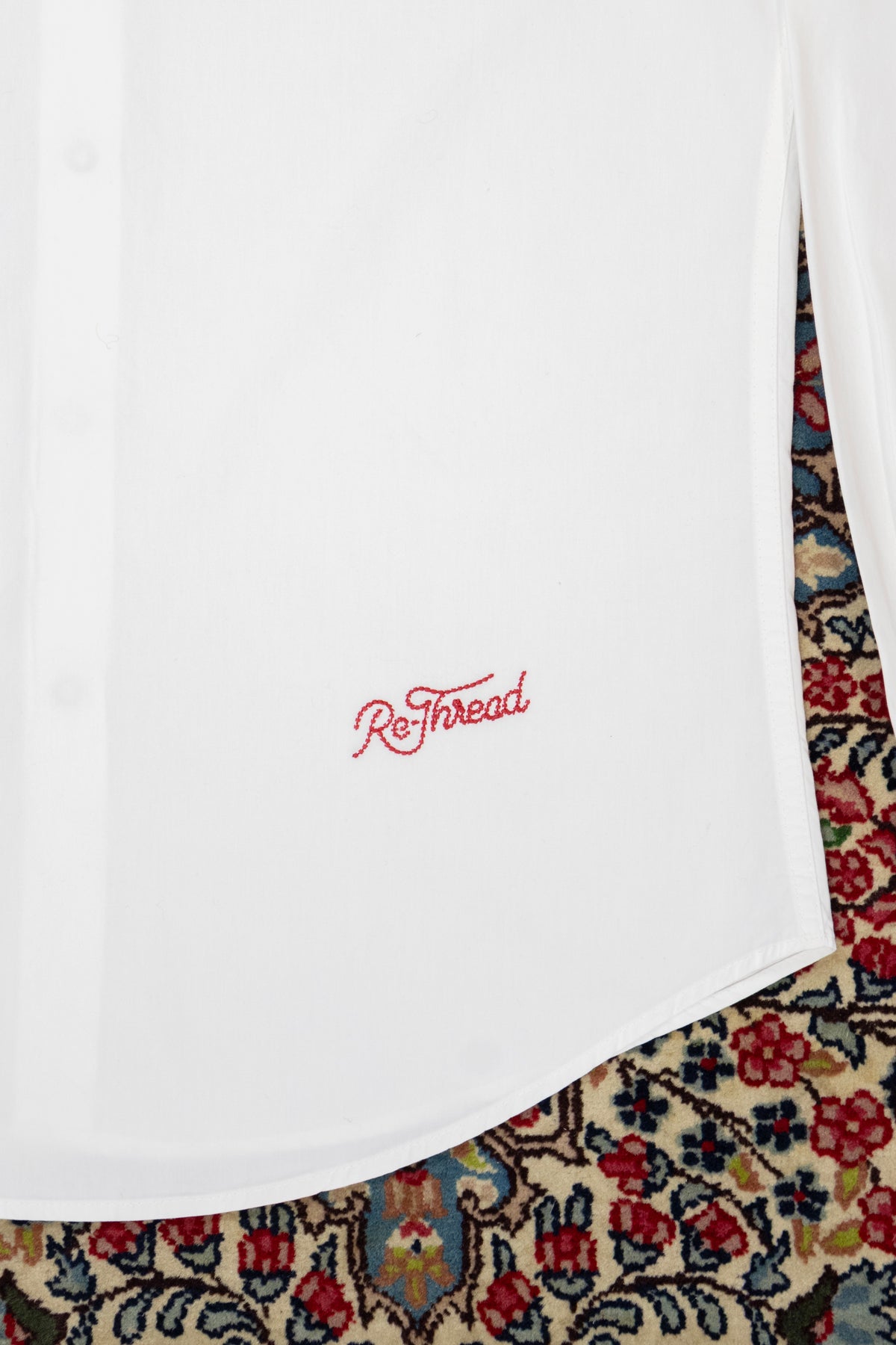 This version had a small manufacturing defect near the logo label. The defect was covered with a machine-made zigzag pattern, red on the inside and white on the outside, to match the "Re-Thread" colors. Finally, the red Re-Thread logo was embroidered on the back.