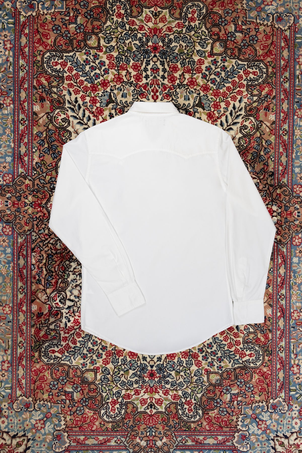 - Pointed collar with a metal concho button in “Southwest” style on the front.