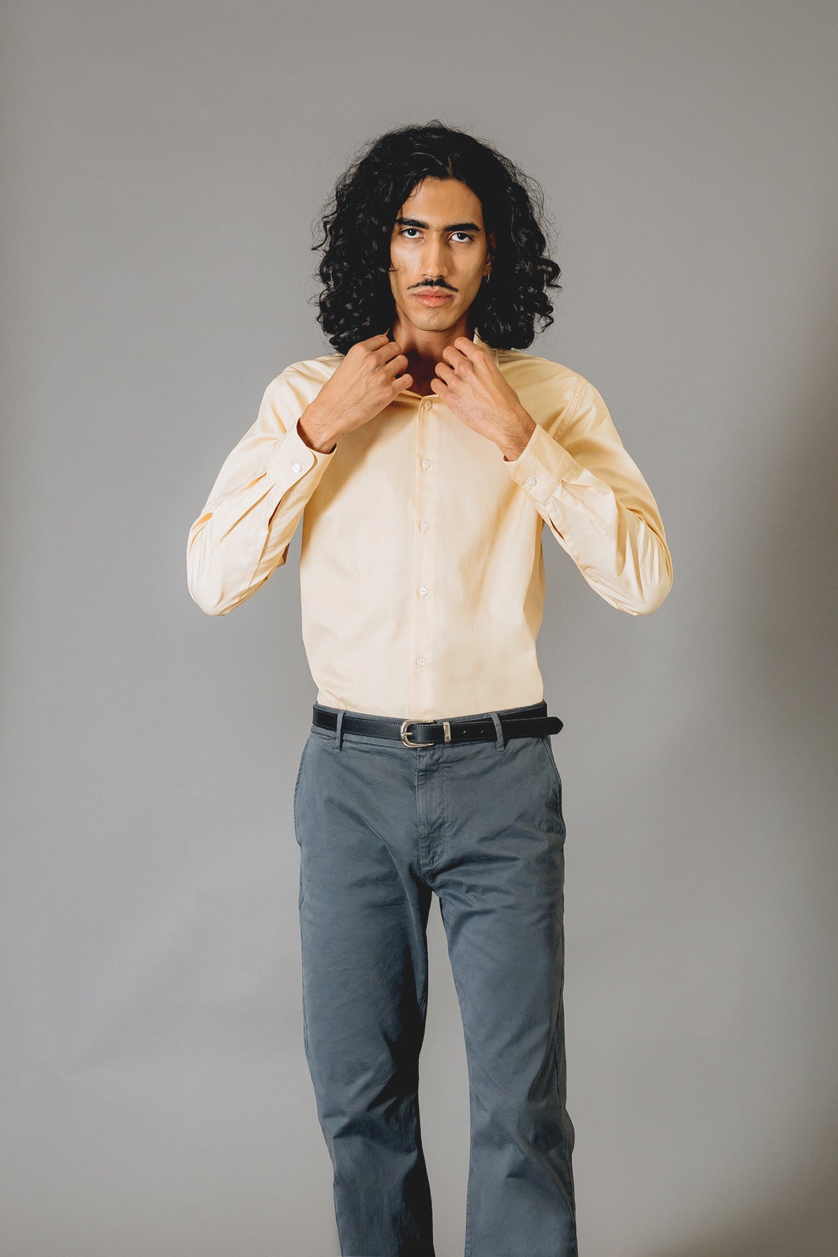 La nostra camicia classica, stesso fit del nostro modello Faulkner ma senza il taschino sul petto. Colletto a punta, pinces sul retro e abbottonatura con bottoni occhi di pesce in stile madre perla centrali e sui polsini. Questa camicia è realizzata in pregiato cotone dal peso leggero.